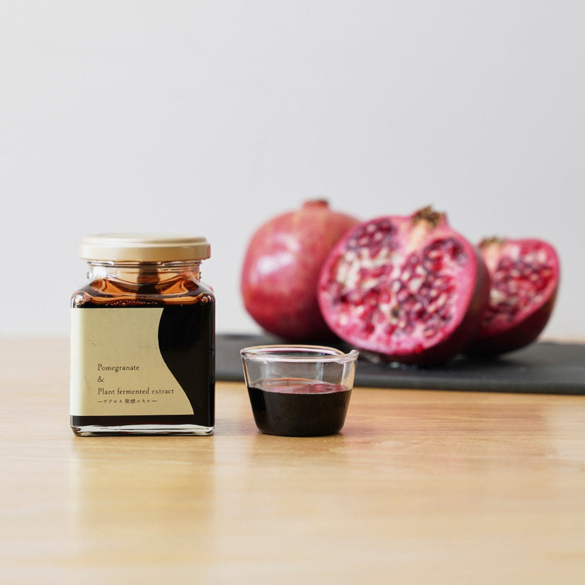 ザクロペースト(国内製造)、植物発酵エキス(黒糖、キャベツ、大根、その他)、(一部にくるみ・アーモンド・オレンジ・カシューナッツ・キウイフルーツ・ごま・バナナ・やまいも・りんごを含む)