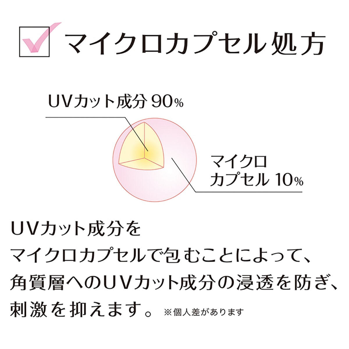 べた付きや、きしみ感、白浮きなく持続性の高いUVカット剤は、直接肌に触れることがないので長時間つけていても肌ストレスを感じさせないカプセル型処方。