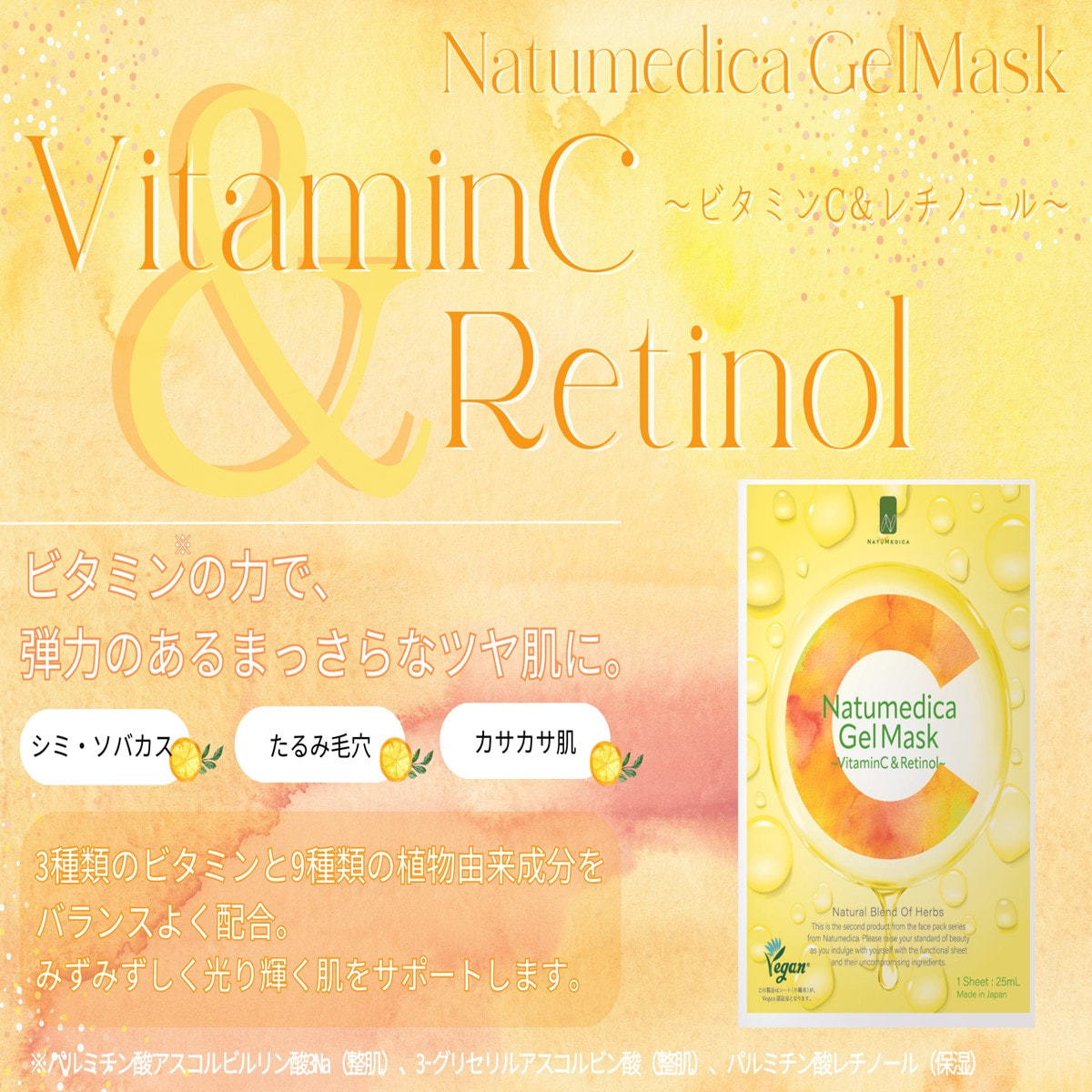 みずみずしく、光り輝く肌へ。ナチュメディカのフェイスパック第2弾は、「弾力」「保湿」「トーンUP」※1をサポートする成分であるビタミンCとレチノールを配合。
